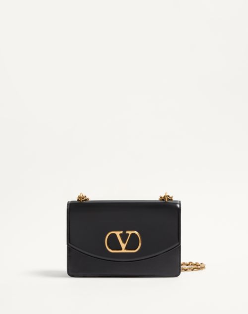 Valentino Garavani Vain shoulder bag in shiny calfskin with metallic VLogo Signature detail. The bag can be carried on the shoulder/cross body thanks to the sliding chain. - Antique gold-finish hardware - Magnetic closure with antique brass-finish VLogo - Nappa lining. Interior: two compartments, zip pocket and slip pocket Shoulder strap drop length: min. 27 cm - 52 cm max. / min. 10.6 cm to max. 20.4 in. - Dimensions: W24xH16xD8 cm / W9.4xH6.2xD0.7 in. - Made in Italy This product contains magnets. Please consider if this product will be worn within 15 cm from any implanted device. Any concerns please contact your healthcare professional.