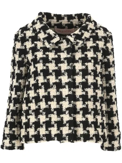 VALENTINO Houndstooth Cropped Blazer In Black