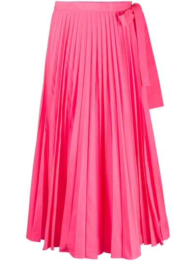 pleated silk midi skirt from VALENTINO GARAVANI featuring Valentino Ready To Wear, hot pink, silk, fully pleated, high waist, concealed rear zip fastening and calf-length.