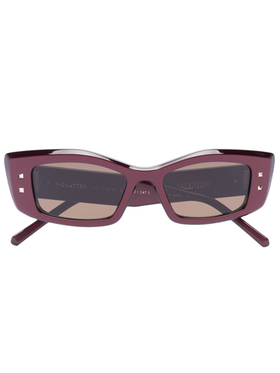VALENTINO Rectangular-frame Sunglasses In Burgundy