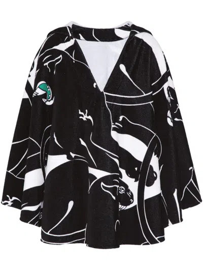 VALENTINO Terry Cotton Leopard Cape In Multi
