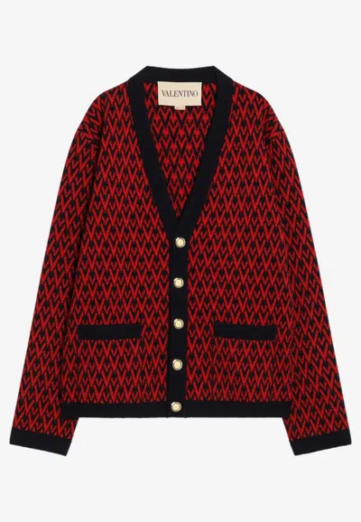 VALENTINO Toute La V Jacquard Wool Cardigan In Multi