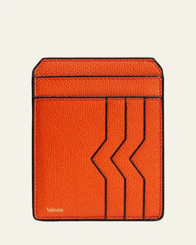 VALEXTRA Men's V-cut Compact Pebble Leather Card Holder In Orange