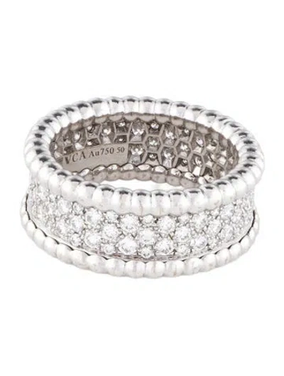 From the Perlée Collection Rhodium-Plated 18K White Gold Designer Size 50Includes Designer Box & Certificate of Authenticity | Van Cleef & Arpels Perlée Diamonds Ring, 3 Rows, Women's 5.5 | 50