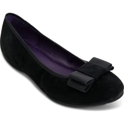 Light cushioning ensures comfort in every stride when you don this elegant suede flat topped by a darling grosgrain bow. Leather upper and lining/rubber sole Imported