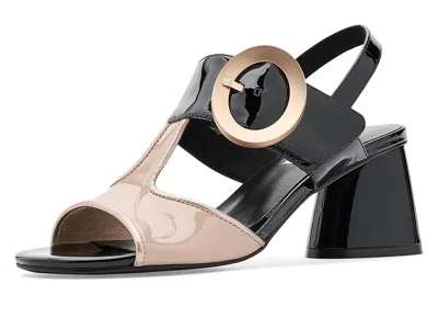Vaneli Valcia - Women's Dress Sandals : Black Patent : Enjoy all-day comfort with Vaneli Valcia sandals designed with a supportive feel and lightweight design for effortless wear. Crafted from a leather upper, faux leather lining, and insole, this patent color-blocked sandal features a rounded open toe, oversized oval buckle and slingback strap with hidden elasticized inserts. ; Sculptural heel. ; Rubber outsole. ; Imported. Measurements: ; Heel Height: 2 1 2 in ; Weight: 1 lb ; Product measurements were taken using size 7, width M (B). Please note that measurements may vary by size. | Vaneli Valcia Women's Dress Sandals Black Patent : 11 M (B), Leather