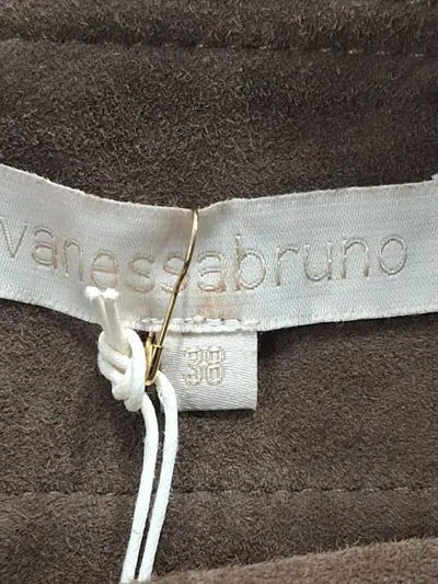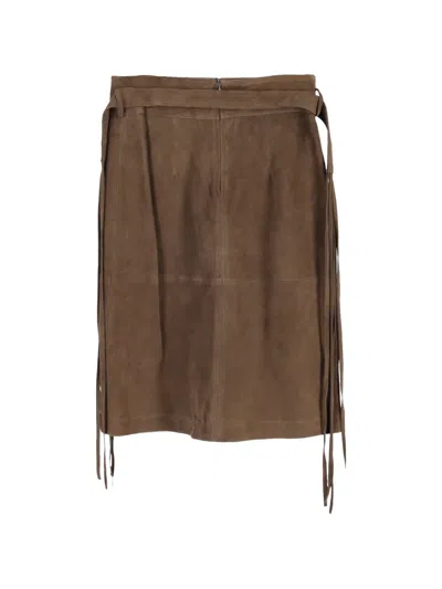 brown suede front slit zip closure waist tie fringing detail Condition: EXCELLENT. This previously owned item is in near-perfect condition with no signs of damage or use.