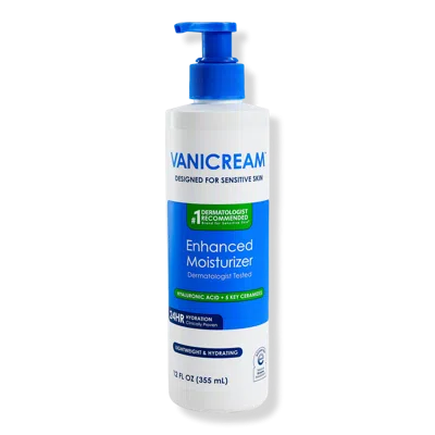 VANICREAM ENHANCED MOISTURIZER. Benefits: Clinically proven to provide 24 hour moisturization for the face and body. Accepted by the National Eczema Association. Dermatologist Recommended. Supports a healthy skin barrier. Non-comedogenic. Key Ingredients: Hyaluronic Acid: Helps retain the skin's moisture. 5 key ceramides: Help to hydrate and retain the skin's moisture. Glycerin: Powerful humectant to keep skin hydrated and supple. Formulated Without: Dyes. Fragrance. Masking fragrance. Lanolin. Parabens. Formaldehyde releasing preservatives. Gluten.