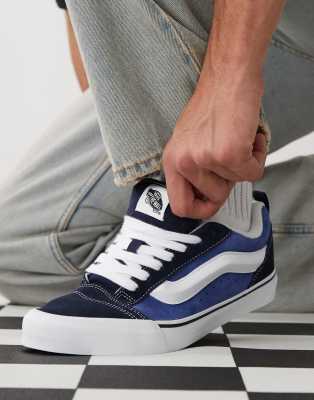 leather, suede effect, brand logo, multicolor pattern, fabric inner, laces, round toeline, flat, rubber sole, vans knu skool, contains non-textile parts of animal origin, low-tops & trainers , Color: Blue , Size: 12