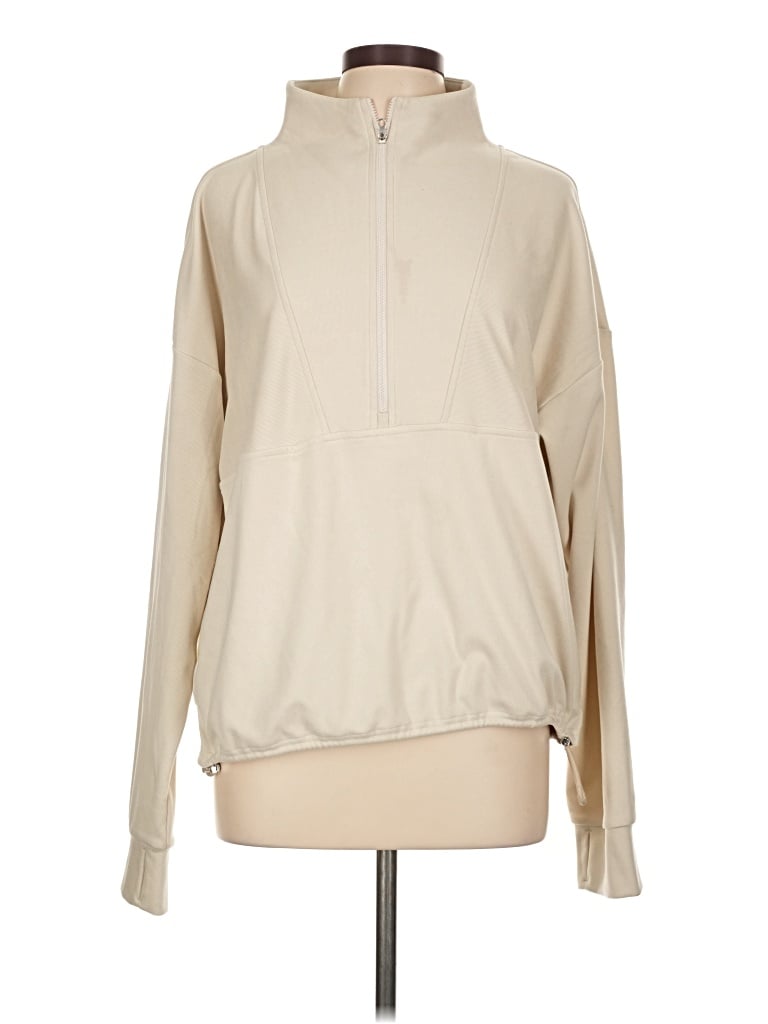 Varley Pullover Sweater, Size: Large. Item Details: Ivory, High Neck, Long Sleeve, Zippers, Women's Tops, Polyester/Elastane