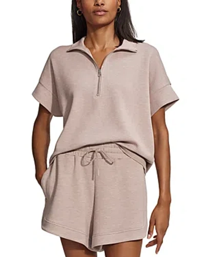 Varley "Ritchie" marled sweatshirt Approx. 24"L from shoulder to hem Spread collar; halfzip front Short sleeves; approx. 2.5"L Hip length Relaxed fit Pullover style Viscose/polyester/elastane Do not iron, machine wash cold Imported