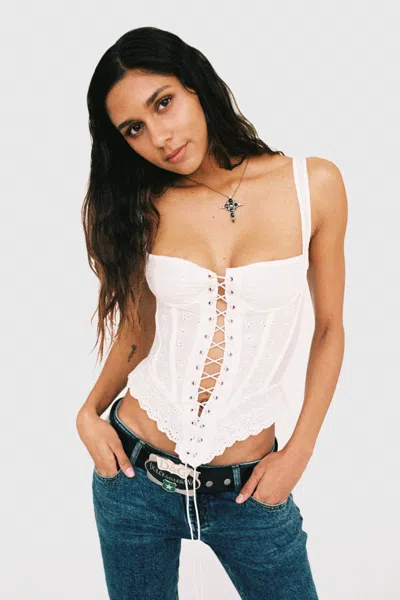 Classic lace-up corset in eyelet cotton fabric from our PF22 collection. Pair with the matching Moni Skirt.. 100% Cotton.