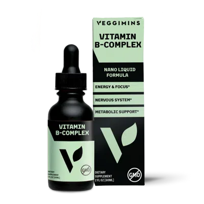 Vitamin B Complex. Benefits: This full-spectrum blend of essential B vitamins helps support energy metabolism, cognitive clarity, and the normal functioning of the nervous system. A foundational formula for individuals seeking nutritional support for daily performance and balance.. Features: Energy & Focus. Metabolic Support. Nervous System. Key Ingredients: At Veggimins, we believe better health starts with pure, plant-powered ingredients. Our thoughtfully crafted liquid supplements are made without fillers or unnecessary additives - just clean, effective nutrients to support your body from within. Produced in our certified organic facility, each formula reflects our commitment to wellness without compromise..