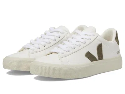 VEJA Campo - Women's Shoes : Chrome Free/Extra White/Khaki : VEJA takes sustainability seriously. Click to read more about VEJA being a proud Certified B Corporation brand, as well as Leather Working Group Certified. ; The VEJA Campo sneaker will highlight your sporty-chic style with a genuine leather upper, leather and coated canvas overlay panels, and a low-profile silhouette. ; Lace-up design offers a secure fit. ; Round-toe silhouette. ; Padded collar and heel. ; Colorful logo accents at the tongue, side, and heel. ; Lining made of a jersey-blend fabric. ; Cushioned rubber and synthetic insole for added comfort. ; Sole made of wild rubber originating from the Amazonian forest. ; Made in Brazil. Measurements: ; Weight: 13 oz ; Product measurements were taken using size EU 39 (US Women's 8), width M. Please note that measurements may vary by size. | VEJA Campo Women's Shoes Chrome Free/Extra White/Khaki : EU 42.5 (US Women's 11.5) M, Leather