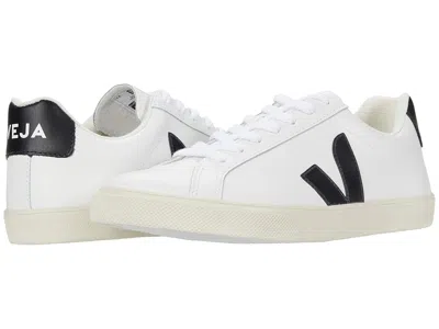VEJA Esplar Logo - Women's Shoes : Extra White/Black : VEJA takes sustainability seriously. Click to read more about VEJA being a proud Certified B Corporation brand, as well as Leather Working Group Certified. ; The VEJA Esplar Logo sneaker will take your sporty look to the next level with a genuine leather upper, a padded collar, round toe, and low-profile silhouette. ; Lace-up design offers a secure fit. ; Signature logo accents at the tongue, side, and heel. ; Lining made of organic cotton. ; Lightly cushioned insole provides all-day comfort. ; Sole made of wild rubber originating from the Amazonian forest. ; Made in Brazil. | VEJA Esplar Logo Women's Shoes Extra White/Black : EU 35 (US Women's 4) M, Leather