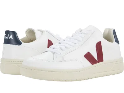 VEJA V-12 - Women's Shoes : Leather Extra White/Marsala/Nautico : VEJA takes sustainability seriously. Click to read more about VEJA being a proud Certified B Corporation brand, as well as Leather Working Group Certified. ; Take your look to the next step when you're running around town sporting the VEJA V-12 sneakers. ; Genuine leather upper. ; Lace-front closure with blind eyelets. ; Round-toe silhouette with perforated accents. ; Logo at the heel. ; Leather V logo at the vamp. ; Lining made of organic cotton. ; Rubber insole. ; Sole made of wild rubber originating from the Amazonian forest. ; Made in Brazil. Measurements: ; Weight: 13 oz ; Product measurements were taken using size EU 40 (US Women's 9), width M. Please note that measurements may vary by size. | VEJA V-12 Women's Shoes Leather Extra White/Marsala/Nautico : EU 42 (US Women's 11) M
