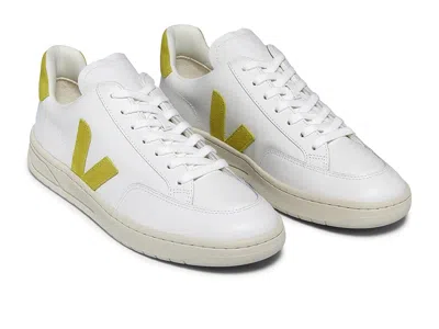 VEJA V-12 - Women's Shoes : Extra White/Liquor : VEJA takes sustainability seriously. Click to read more about VEJA being a proud Certified B Corporation brand, as well as Leather Working Group Certified. ; Take your look to the next step when you're running around town sporting the VEJA V-12 sneakers. ; Genuine leather upper. ; Lace-front closure with blind eyelets. ; Round-toe silhouette with perforated accents. ; Logo at the heel. ; Leather V logo at the vamp. ; Lining made of organic cotton. ; Rubber insole. ; Sole made of wild rubber originating from the Amazonian forest. ; Made in Brazil. Measurements: ; Weight: 13 oz ; Product measurements were taken using size EU 40 (US Women's 9), width M. Please note that measurements may vary by size. | VEJA V-12 Women's Shoes Extra White/Liquor : EU 41 (US Women's 10) M