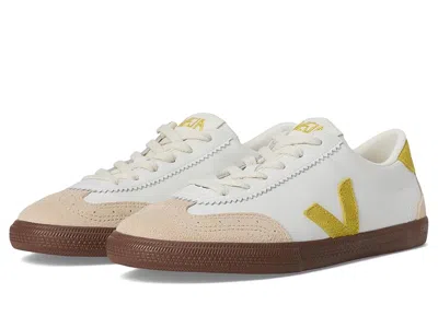 VEJA Volley - Women's Shoes : White Liquor Bark : VEJA takes sustainability seriously. Click to read more about VEJA being a proud Certified B Corporation brand, as well as Leather Working Group Certified. ; Created by combining design cues from classic volleyball shoes with contemporary comfort elements, the VEJA Volley Sneakers keep you moving with style and confidence. These are built with a soft organic cotton upper coordinated with suede and leather panels, a breathable polyester lining, and a cushioned rubber, textile, and EVA insole. ; Certified B Corporation sustainability. ; Lace-up closure. ; Round toe silhouette. ; Iconic logo applique on the side. ; Branded tongue and heel counter. ; Rubber outsole. ; Made in Brazil. Measurements: ; Heel Height: 3 1 4 in ; Product measurements were taken using size 7, width N (AA). Please note that measurements may vary by size. | VEJA Volley Women's Shoes White Liquor Bark : EU 41 (US Women's 10) M, Textile