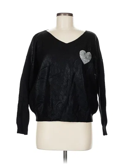 Venti6 Pullover Sweater, Size: One Size. Item Details: Black, Hearts Pattern, Sweetheart Neckline, Long Sleeve, Sequins & Rhinestones, Women's Tops, Viscose/Elastane