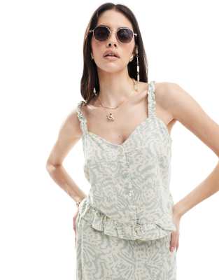 VERO MODA Linen Blend Button Down Top In Abstract Print - Part Of A Set-green