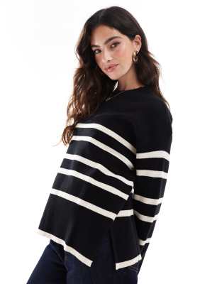 VERO MODA O Neck Sweater In Black With Cream Stripe