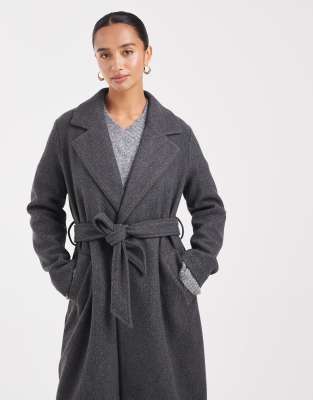 VERO MODA PETITE Extra Long Tie Waist Formal Coat In Brown