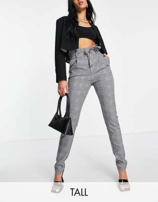 VERO MODA TALL Paperbag Pants In Gray Plaid