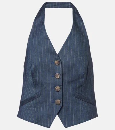 VERONICA BEARD Arabella Pinstripe Linen-blend Vest In Blue