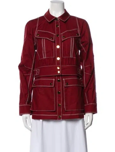 Veronica Beard Denim Jacket Red Pointed Collar Flap Pockets & Snap Closure Size not listed, estimated from measurements. Designer Fit: Jackets by Veronica Beard typically fit true to size. | Veronica Beard Denim Jacket in Red, Women's S