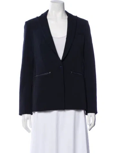 Veronica Beard Jacket Blue Pointed Collar Zip Pockets & Button Closure Designer Fit: Jackets by Veronica Beard typically fit true to size. | Veronica Beard Jacket in Blue, Women's US 4 | S