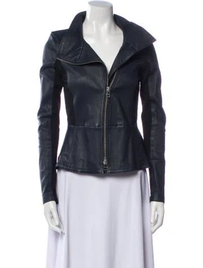 Veronica Beard Leather Biker Jacket Blue Pointed Collar Zip Closure Designer Fit: Jackets by Veronica Beard typically fit true to size. | Veronica Beard Leather Biker Jacket in Blue, Women's US 4 | S