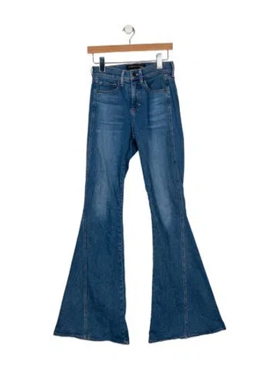 Veronica Beard Flared Jeans Blue Medium Wash with Mid-Rise5 Pockets Embroidered Accent Zip & Button Closure Fit: Jeans by Veronica Beard typically fit true to size. | Veronica Beard Mid-Rise Flared Jeans in Blue, Women's US 25 | XS