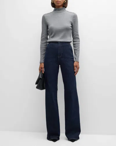 VERONICA BEARD Nate Ribbed Stretch-pima Cotton-jersey Turtleneck Top In Gray