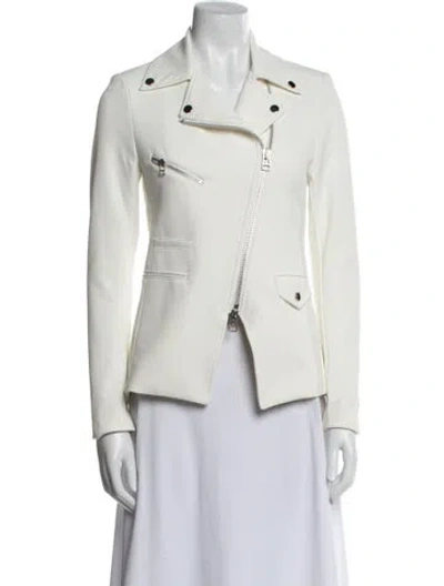 Veronica Beard Nylon Biker Jacket White Pointed Collar Zip Pockets & Zip Closure Designer Fit: Jackets by Veronica Beard typically fit true to size. | Veronica Beard Nylon Biker Jacket in White, Women's US 0 | XS