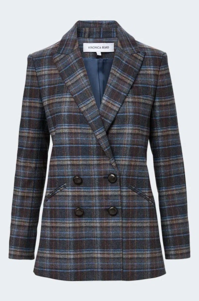 A blazer so versatile you can wear it to the office or pair it with jeans for a more casual look.Introducing the Oria Dickey Jacket by Veronica Beard, a stylish blueprint for sophistication in blue multi plaid. With its long sleeves and tailored from a premium Italian wool blend, this elegant blazer extends to a length of 28.875 inches, making it perfect for layering. The boxy, relaxed fit showcases a double-breasted button closure, while a peak lapel and slanted welt pockets add to its timeless appeal. Made in Italy, this jacket is designed for the modern woman and is best maintained through dry cleaning. Model is 5'10" and wears a size 2.