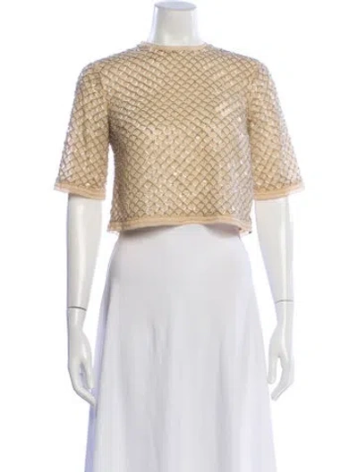 Veronica Beard Crop Top Neutrals Patterned Beaded Accents Short Sleeve with Crew Neck Designer Fit: Tops by Veronica Beard typically fit true to size. | Veronica Beard Patterned Crew Neck Crop Top in Neutrals, Women's XS