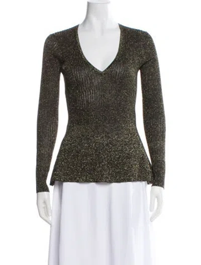 Pre-owned Patterned V-neck Top In White