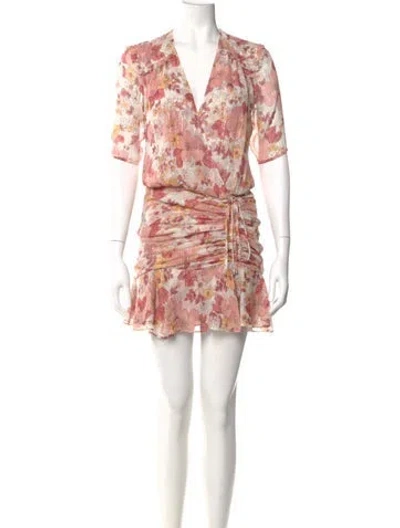 Veronica Beard Silk Wrap Dress Metallic & Pink Floral Print Ruffle & Glitter Accents Short Sleeve with V-Neck Concealed Zip Closure at Front Designer Fit: Dresses by Veronica Beard typically fit true to size. | Veronica Beard Silk Mini Dress in Metallic/Pink, Women's US 0 | XS