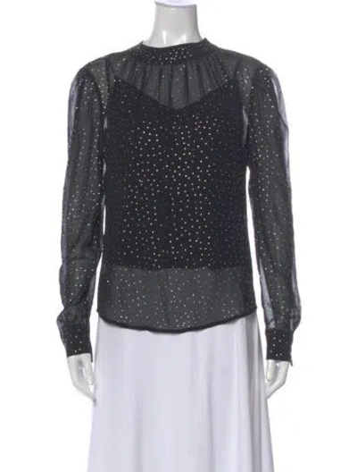 Veronica Beard Silk Blouse Black Printed Crystal Embellishments Long Sleeve with Mock Neck Sash-Tie Closure at Back Designer Fit: Tops by Veronica Beard typically fit true to size. | Veronica Beard Silk Printed Blouse in Black, Women's US 2 | XS