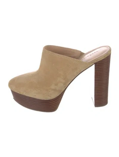 Veronica Beard Suede Mules Neutrals Round-Toes Platform Includes Dust Bag | Veronica Beard Suede Mules in Neutrals, Women's 8.5