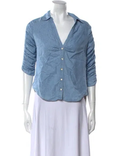 Veronica Beard Cardigan Blue Pleated & Ruffle Accents Long Sleeve with Collar Button Closure at Front Designer Fit: Sweaters by Veronica Beard typically fit true to size. | Veronica Beard Sweater in Blue, Women's XS