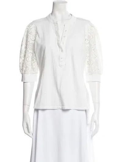 Veronica Beard Top White Three-Quarter Sleeve Designer Fit: Tops by Veronica Beard typically fit true to size. | Veronica Beard Three-Quarter Sleeve Top in White, Women's L