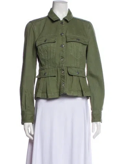 Veronica Beard Utility Jacket Green Pleated Accents & Pointed Collar Flap Pockets & Button Closure Designer Fit: Jackets by Veronica Beard typically fit true to size. | Veronica Beard Utility Jacket in Green, Women's M