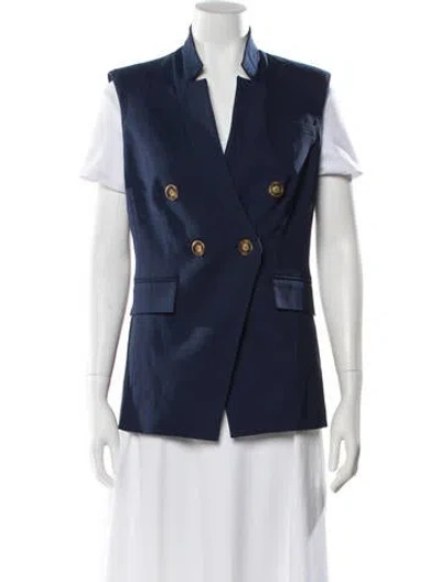 Veronica Beard Vest Blue Pointed Collar Flap Pockets & Button Closure Designer Fit: Jackets by Veronica Beard typically fit true to size. | Veronica Beard Vest w/ Tags in Blue, Women's US 4 | S