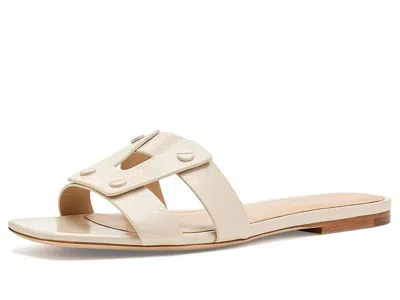 Veronica Beard Via Slide - Women's Wedge Shoes : Ecru : Expertly crafted from leather, the Veronica Beard Via Slide features a minimal, multi-strap design punctuated by gold hardware. Equal parts polish and ease, it's great for weekends and wanderlust. The open toe slides have leather upper, lining, and insole. ; Slip-on style. ; PESTICIDE MARKING: EPA Registration Number; PESTICIDE REGISTRATION STATUS: This product qualifies for an exemption from registration under the U.S. Federal Insecticide, Fungicide, and Rodenticide Act. ; Square toe design. ; Synthetic rubber outsole. ; Imported. Measurements: ; Heel Height: 1 4 in ; Weight: 6 oz ; Product measurements were taken using size 9, width M. Please note that measurements may vary by size. | Veronica Beard Via Slide Women's Wedge Shoes Ecru : 6.5 M, Leather