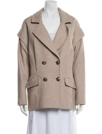 Veronica Beard Wool Peacoat Neutrals Pleated Accents & Pointed Collar Short Flap Pockets & Button Closure Fit: Coats by Veronica Beard typically fit true to size. | Veronica Beard Wool Peacoat in Neutrals, Women's XS