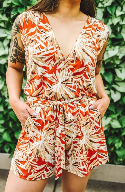 VERONICA M Donna Romper In Rust Palm Print In Multi