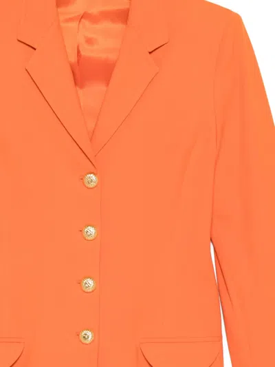 orange notched lapels front button closure front flap pockets gold-tone buttons single-breasted Condition: GOOD. This previously owned and used item is in good condition with minimal signs of use. This may include fading of material or plating and scratches.