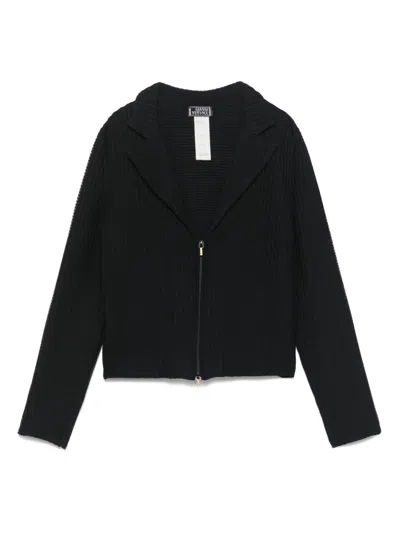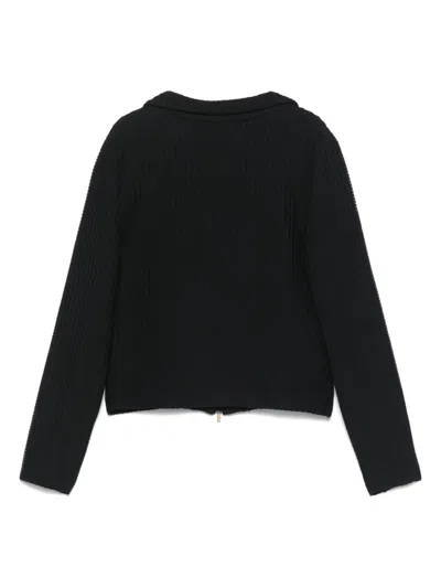 circa 1990s black waffle effect front two-way zip fastening notched collar long sleeves cropped
