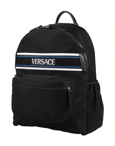 VERSACE Backpacks. maxi, techno fabric, contrasting applications, logo, solid color, zipper closure, external pockets, internal pocket, fully lined. 90% Polyamide, 10% Acrylic